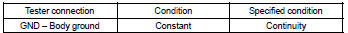 - Check that the continuity between terminals at each condition, as shown in the chart.