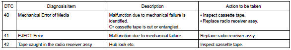 Toyota Corolla (E120) 2002–2008 Repair Manual / Diagnostics / Audio system / Diagnostic trouble code chart