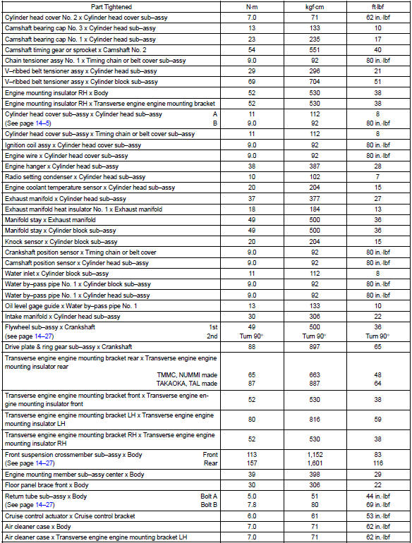 Toyota Corolla (E120) 2002–2008 Repair Manual / Service specifications / Engine mechanical