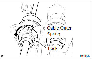 Toyota Corolla (E120) 2002–2008 Repair Manual / Automatic transmission / trans / Floor shift cable transmission control select