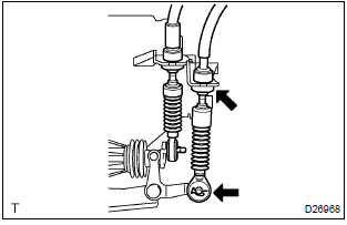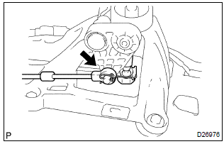 - Remove the clip and washer, separate the top of the select cable from the transaxle.