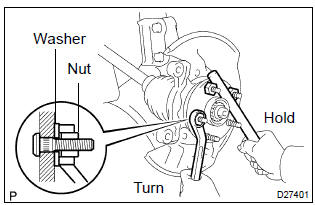 - Install a washer and nut to a new lh hub bolt as shown in the illustllation.