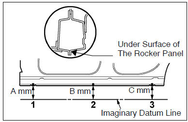 | 2 | The place that was lowered b mm from the under surface of the rocker panel centered between 1 and 3. |