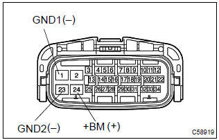 control ecu harness side connector and body ground.Resistance: 1 Ω or less