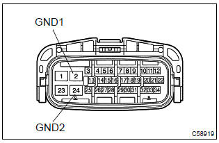 - Measure resistance between terminal gnd (s1–2, 24) of