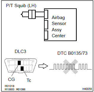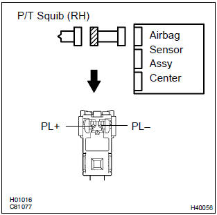1 Check p/t squib(lh) circuit(airbag sensor assy center – front seat outer belt assy lh)