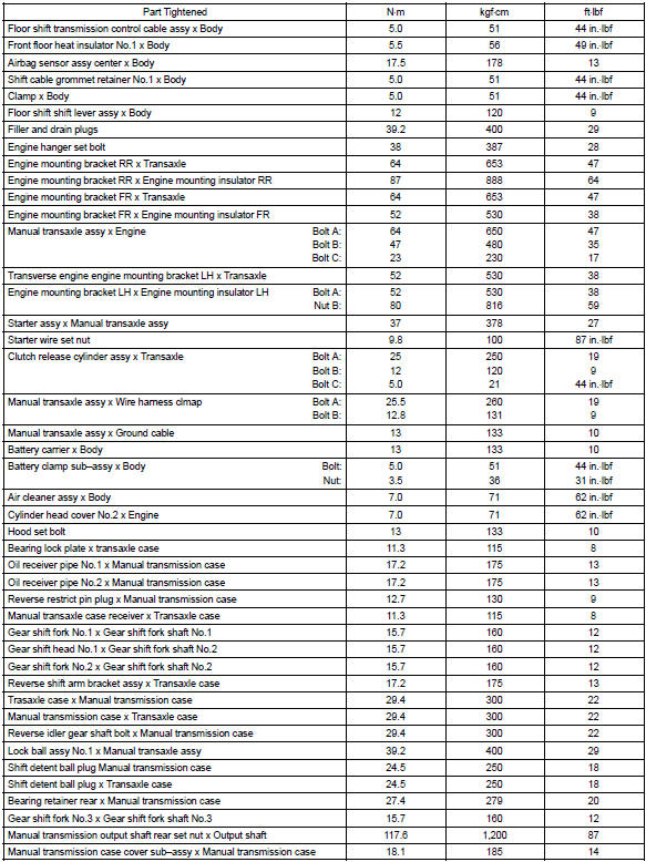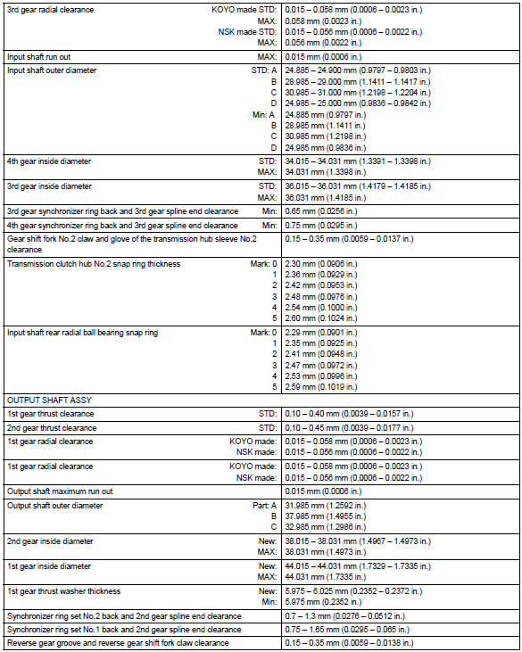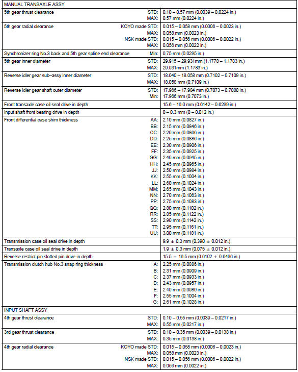 Toyota Corolla (E120) 2002–2008 Repair Manual / Service specifications / Manual transmission / transaxle