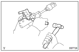 - Using a pin punch and a hammer, drive out the slotted spring pin.