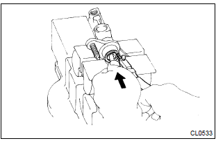 - While pushing the push rod, using snap ring pliers, install the snap ring.