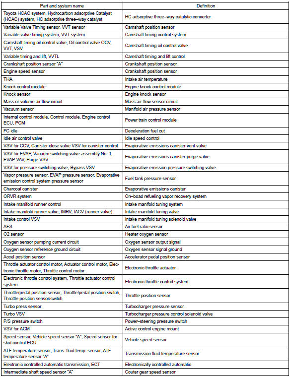 Toyota Corolla (E120) 2002–2008 Repair Manual / Diagnostics / Electronic controlled automatic transaxle / Part and system name list