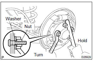 - Install a washer and nut to a new lh hub bolt as shown in the illustration.
