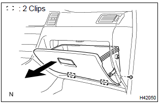 - Remove the screw from the glove compartment door stopper sub–assy.