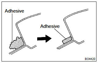 - hold the back window glass in place securely with protective tape or equivalent until the adhesive has completely hardened.