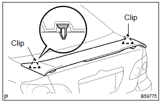 - Remove the 2 clips, wire harness grommet and rear spoiler.