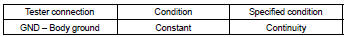 - Check that the continuity between terminals at each condition, as shown in the chart.
