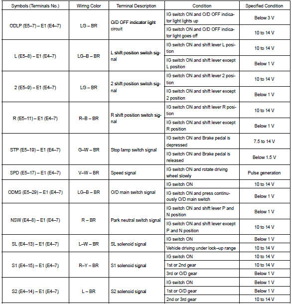 Toyota Corolla (E120) 2002–2008 Repair Manual / Diagnostics / Electronic controlled automatic transaxle /  Terminals of ecm
