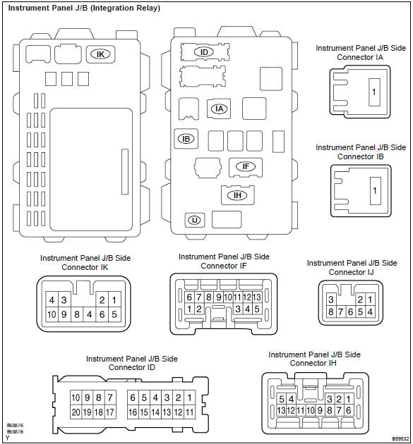 - disconnect the id connector of the instrument panel j/b, and check the continuity of each terminal of the disconnected connectors.