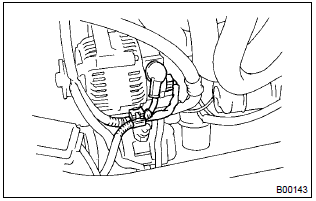 - remove the rubber cap and nut, and disconnect the alternator wire.