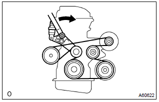 - Turn the v–ribbed belt tensioner slowly clockwise and loosen it. Then, remove the fan and generator belt v and put back the v–ribbed belt tensioner little by little and fix it quietly.
